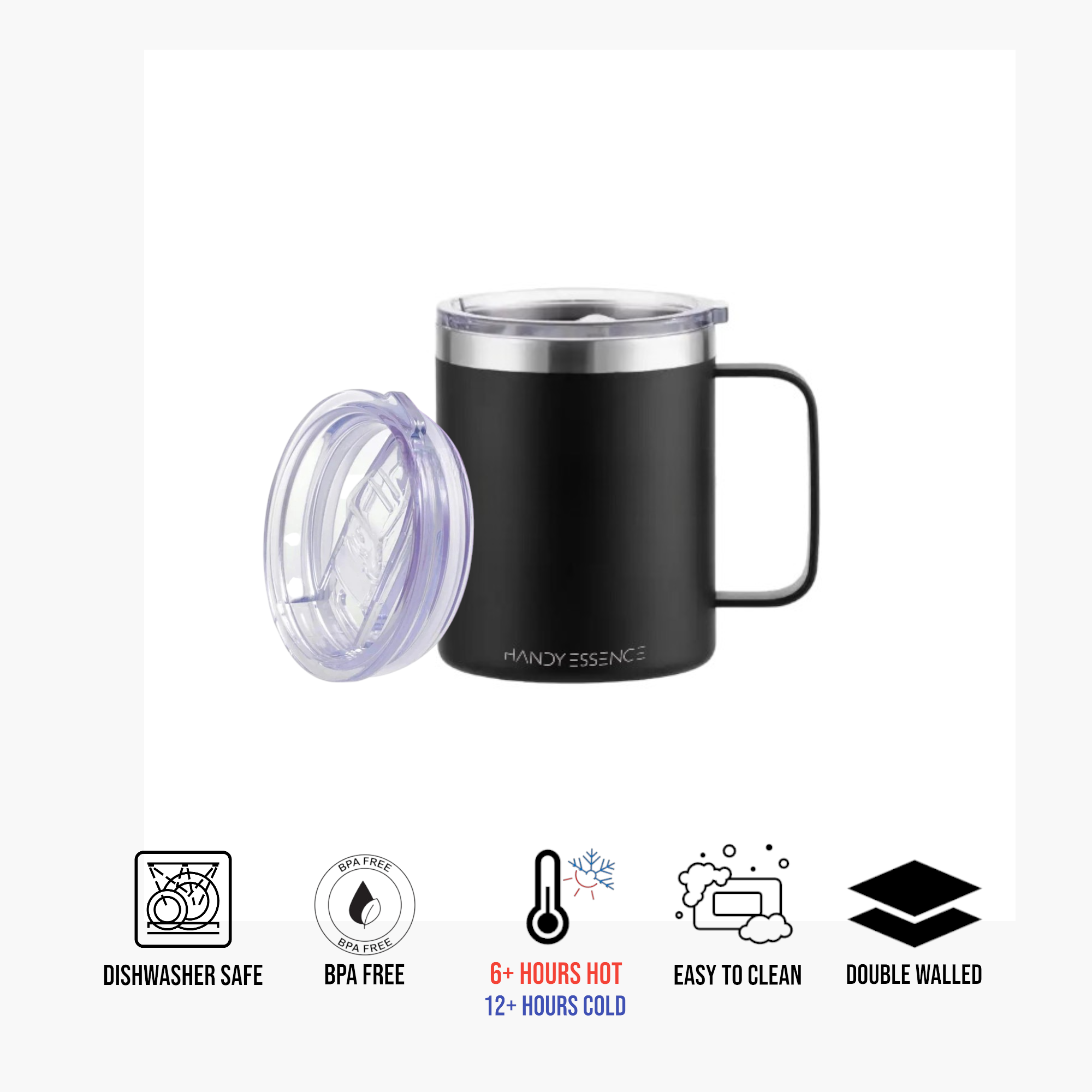 Get this replacement lid, compatible for your 12oz Handy Essence coffee mug. DOES NOT include the mug. The easy press lid helps keep dust and unwanted items from getting into your drink!